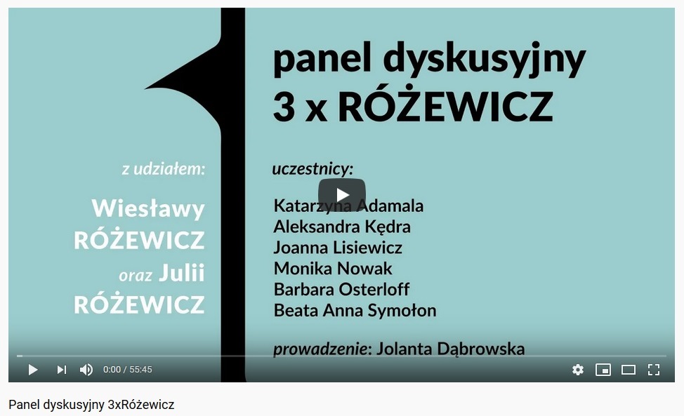 W piątek 9 października 2020 roku, w dniu urodzin Tadeusza Różewicza oraz w pierwszym dniu tegorocznego „Różewicz Open Festiwal Online” odbył się panel dyskusyjny „3 x Różewicz”.