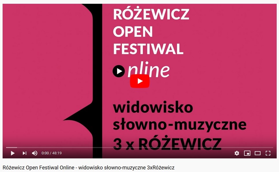 Widowisko słowno-muzyczne „3 x Różewicz” to drugi dzień „Różewicz Open Festiwal Online”. Widowisko od 10 października można obejrzeć na stronie www.rozewiczopen.pl.