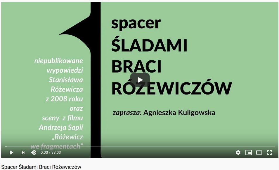 W ostatnim, trzecim dniu „Różewicz Open Festiwal Online” na spacer śladami braci Różewiczów zaprosiła Agnieszka Kuligowska – radomszczanka, nauczycielka historii w Zespole Szkól Ekonomicznych w Radomsku. W programie, który oglądać można od 11 października na stronie www.rozewiczopen.pl wykorzystane zostały fragmenty filmu dokumentalnego Andrzeja Sapiji „Różewicz we fragmentach”, materiały archiwalne Muzeum Regionalnego im. Stanisława Sankowskiego w Radomsku oraz niepublikowane nagranie z ostatnie wizyty Stanisława Różewicza w rodzinnym mieście.